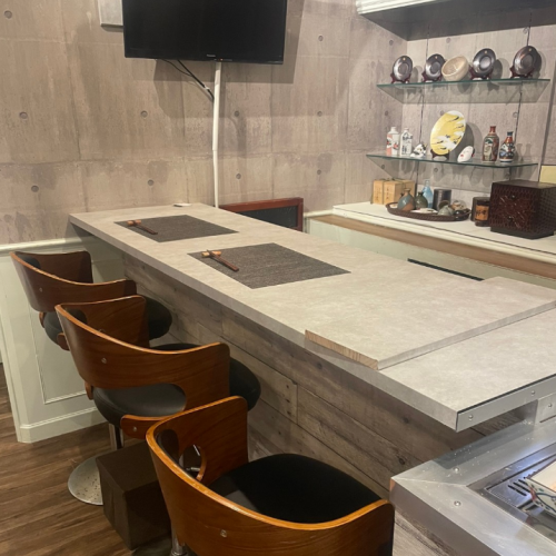 餐廳內部設計風格寧靜祥和,即使是大型團體也能感到舒適。我們提供寬敞的餐桌座位,最多可容納10人!吧台座位也是放鬆身心、享受鐵板燒熱鬧氛圍的絕佳場所。溫暖的燈光和木質內部營造出舒適的氛圍。